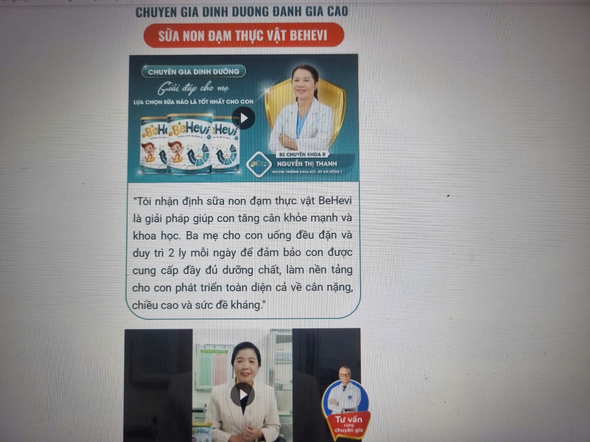 Bên cạnh đó, website behevivietnam.com còn sử dụng nhiều hình ảnh có y, bác sỹ để quảng cáo, giới thiệu về sản phẩm có dấu hiệu vi phạm các quy định về việc quảng cáo sản phẩm dinh dưỡng.