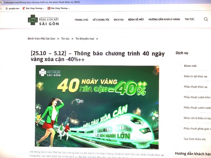 | Ảnh chụp màn hình quảng cáo chương trình khuyến mại "40 ngày xóa cận" của Bệnh viện Mắt Sài Gòn - Ảnh chụp tại Matsaigon.com |