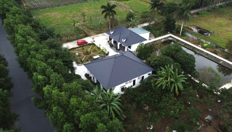 | Hai công trình dạng nhà ở kiên cố, lợp mái ngói Nhật bề thế, hoành tráng “mọc” trên đất dự án trồng, sản xuất rau an toàn của Công ty CP Rau an toàn Vạn Xuân tại xã Vũ Phúc, thành phố Thái Bình. Ảnh: Trung Du |