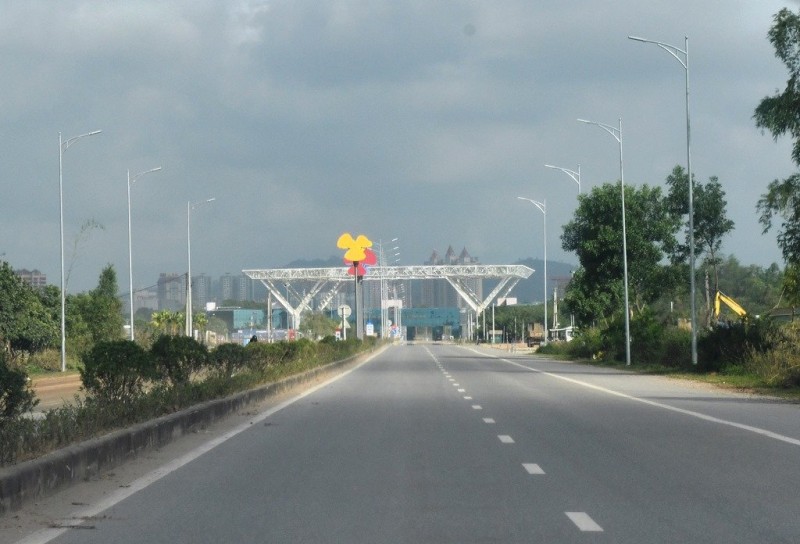 Đường ra cửa khẩu Bắc Luân II vắng vẻ không một bóng xe. |