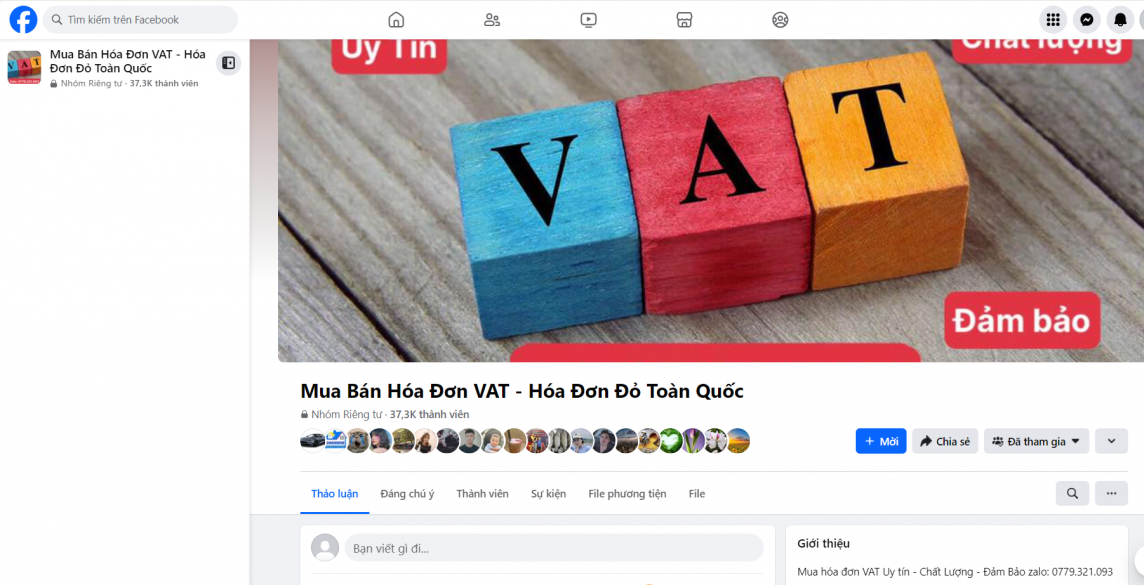 | Một hội nhóm công khai mua bán hoá đơn giá trị gia tăng với hơn 37,3 nghìn thành viên |