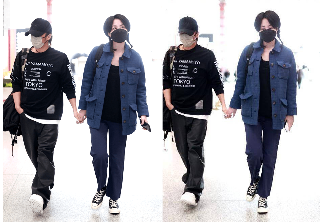 | Tạ Đình Phong và Vương Phi xuất hiện tại sân bay với phong cách giản dị, hai người nắm tay nhau ngọt ngào và tình cảm, đập tan tin đồn chia tay (Ảnh: Sohu) |