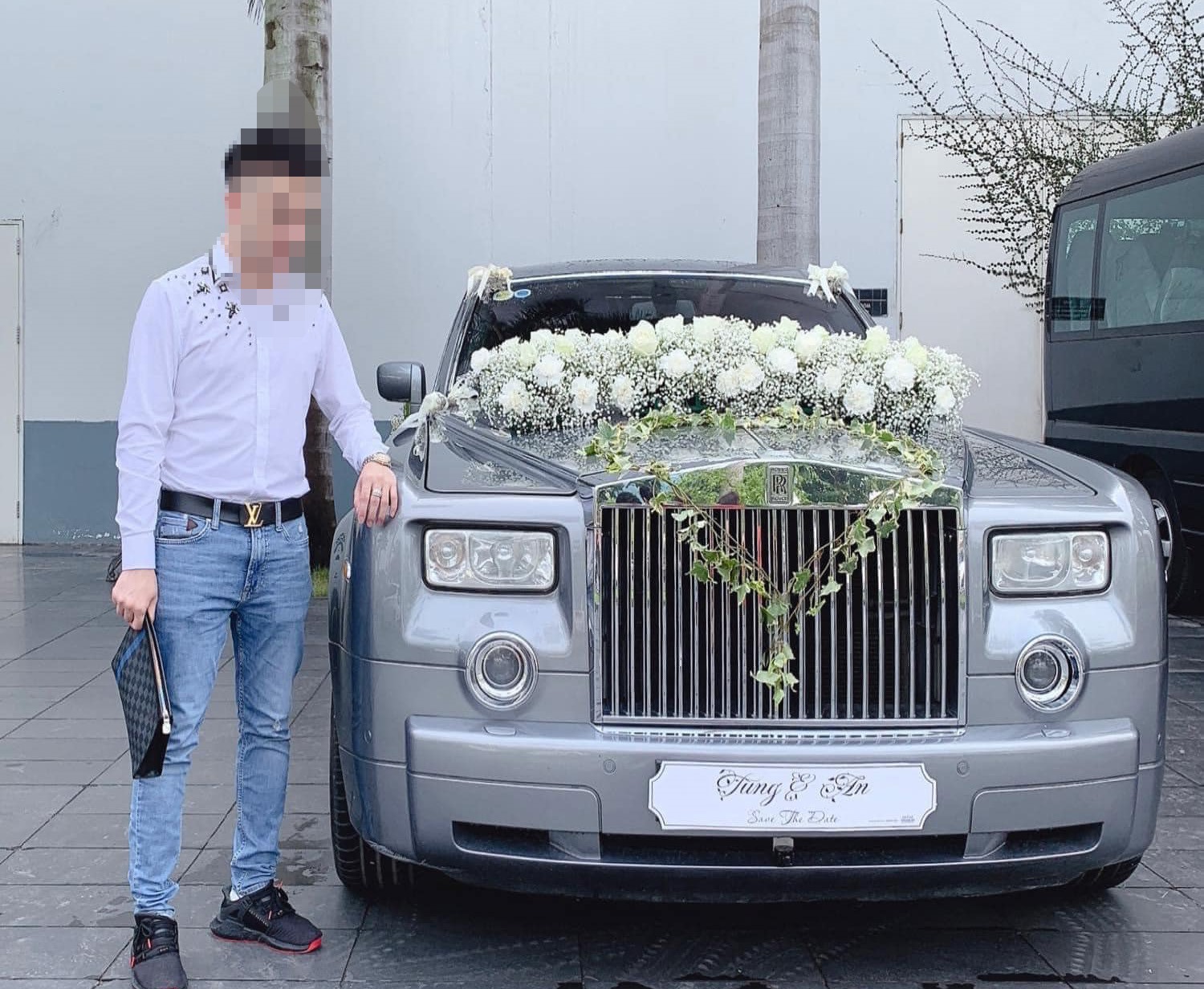 | Chiếc siêu xe trị giá hàng chục tỉ đồng trong đám cưới V.A bị tố là hàng đi thuê. |