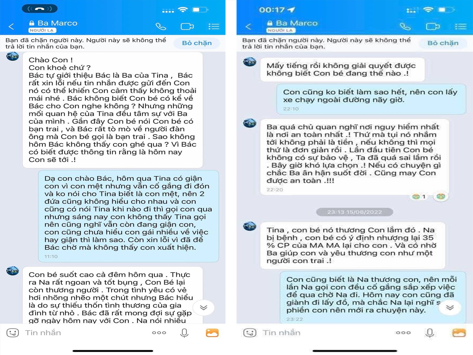| Tin nhắn mà người cha "ảo" của V.A nhắn cho anh K. |