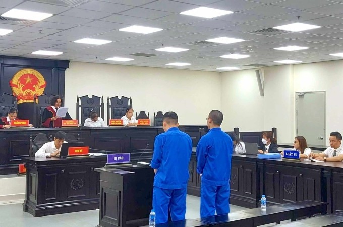 | Bị cáo Hiệp (phải) và Trung nghe tuyên án sáng 18/9 |