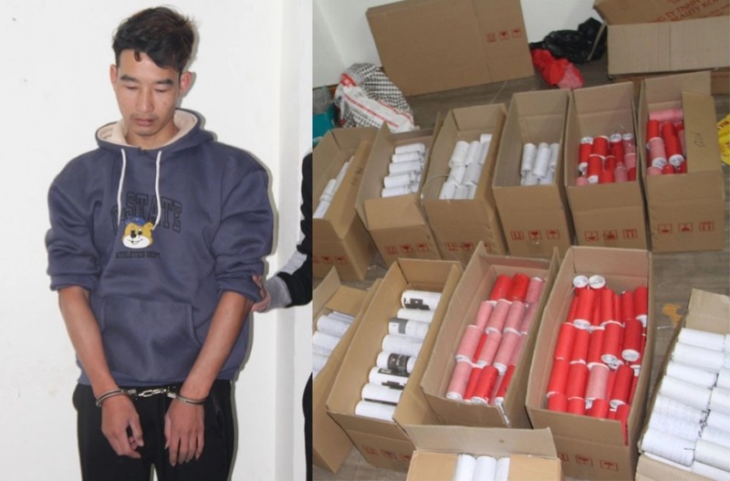 Trước đó, ngày 30/1, các trinh sát của phòng Cảnh sát điều tra tội phạm về tham nhũng, kinh tế, buôn lậu, môi trường - Công an tỉnh Hưng Yên phối hợp cùng công an phường Nhân Hòa, TX. Mỹ Hào, bắt quả tang đối tượng Nguyễn Thế Tú (sinh năm 1994, trú tại: thôn Như Lâm, xã Phượng Kỳ, huyện Tứ Kỳ, tỉnh Hải Dương) đang chở hai thùng carton mang đi tiêu thụ. Qua kiểm tra, phát hiện 116 khối hình tròn, một đầu được gắn dây dẫn màu xám, một đầu được bịt kín. Qua đấu tranh, Tú khai nhận là pháo tự chế.