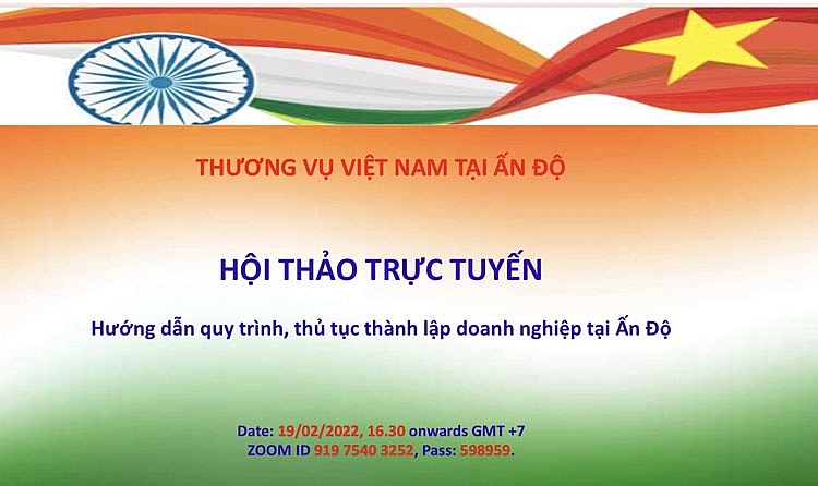 Để hỗ trợ doanh nghiệp Việt Nam hiểu rõ hơn về tiềm năng thị trường cũng như quy định pháp luật và thủ tục thành lập doanh nghiệp tại Ấn Độ. Thương vụ - Đại sứ quán Việt Nam tại Ấn Độ sẽ phối hợp với Văn phòng luật sư, Công ty trợ giúp pháp lý, Phòng Thương mại và Công nghiệp Việt Nam, Hội đồng Xúc tiến thương mại, Xuất nhập khẩu Ấn Độ tổ chức chuỗi sự kiện giới thiệu thông tin về thị trường, xúc tiến thương mại - đầu tư tại Ấn Độ, nhân dịp kỷ niệm 50 năm quan hệ ngoại giao giữa hai nước 1972 - 2022.