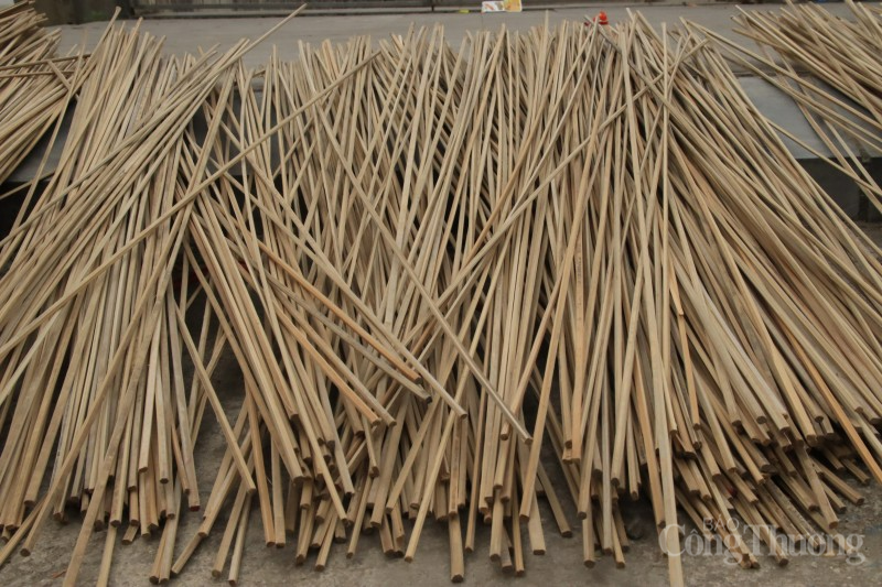 Cách đặt dao để vót nứa làm hương trám đen cũng phải thật cẩn thận để hương khi hoàn thành đúng kích cỡ, độ dài. |