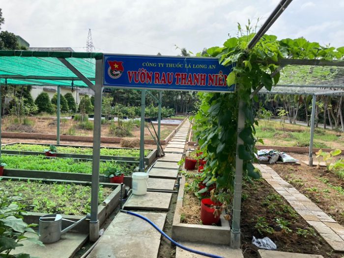 Với diện tích 1.050 m2, Đoàn viên Thanh niên Đoàn cơ sở Công ty Thuốc lá Long An đã thực hiện công trình Thanh niên cấp Đoàn Khối Doanh nghiệp Trung ương mang tên Vườn rau thanh niên. Được sự hỗ trợ của máy móc, các bạn đoàn viên đã chặt cây, phát quang bụi rậm, san lấp mặt bằng, dọn dẹp vệ sinh cỏ dại, vận chuyển phế thải, phân lô, tách thửa, thiết kế bản vẽ và thực hiện thi công xây dựng các ô bằng gạch ống để phân chia khu vực trồng trọt. Các khung giàn, đường nước tưới được thiết kế công phu, tái sử dụng nguyên vật liệu phế thải để thi công khung giàn, giăng mắc lưới trồng rau, hoa màu và kéo đường ống cấp nước đến từng khu vực.