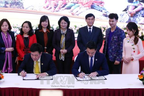 | Ông Lê Khánh Trình, Chủ tịch Hội đồng Quản trị Tập đoàn Trường Tiền (bên phải) và ông Hoàng Văn Tiến, Giám đốc Quỹ Bảo trợ trẻ em Việt Nam (bên trái) ký kết thỏa thuận tài trợ với tổng giá trị 60 tỷ đồng trong thời gian 5 năm 2018 – 2022. |