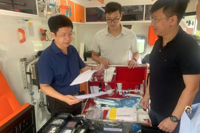 | TS Nguyễn Trọng Khoa - Phó Cục trưởng phụ trách điều hành Cục Quản lý khám chữa bệnh (Bộ Y tế) kiểm tra công tác y tế phục vụ Lễ tang Tổng Bí thư Nguyễn Phú Trọng. (Ảnh: BYT) |