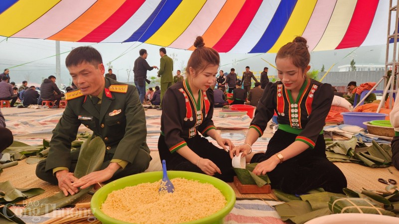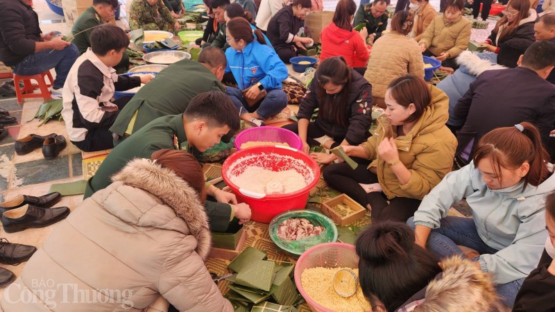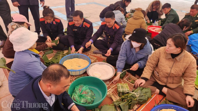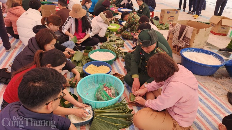 | Chương trình gói bánh chưng xanh không chỉ dịp để cán bộ, công chức người lao động, lượng lượng vũ trang giao lưu, gặp gỡ mà còn góp phần thắm thiết tình quân dân nơi biên giới. |