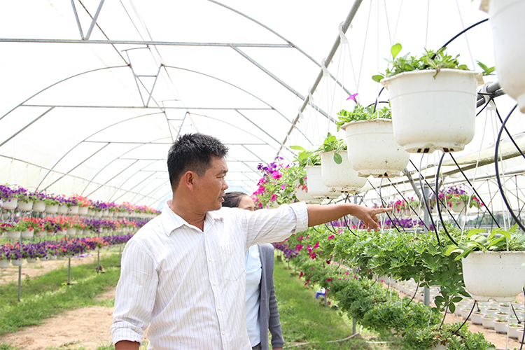 Anh Hùng bên vườn hoa trồng theo mô hình công nghệ cao