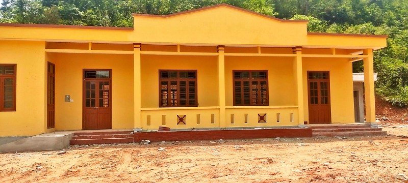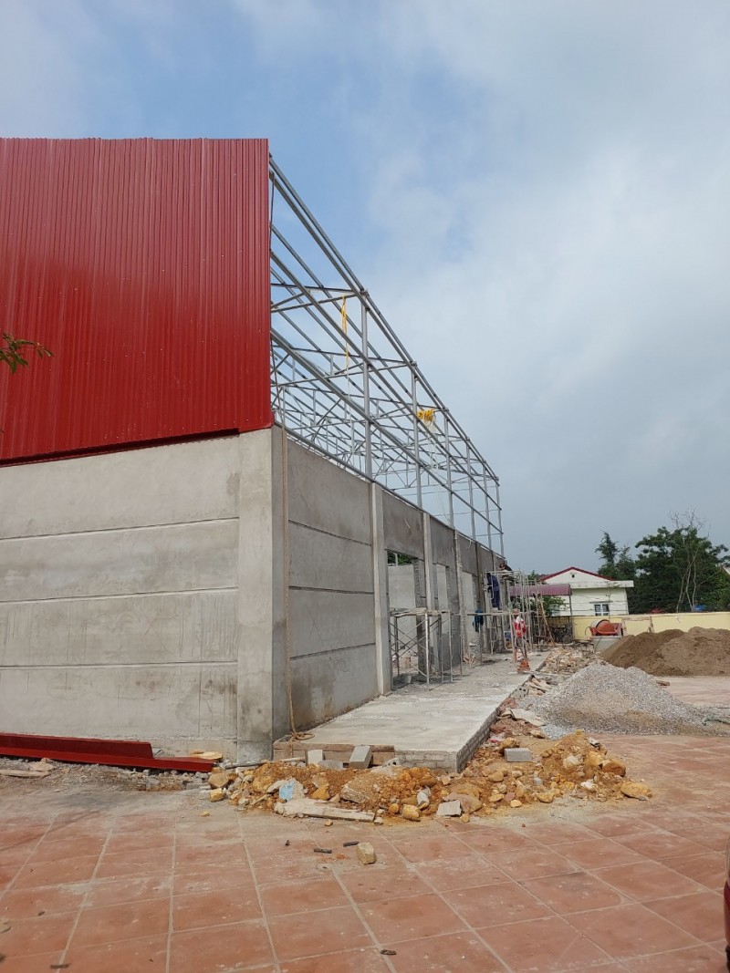 | Nhà đa năng Ttrường THCS Khánh Xuân đang trong quá trình hoàn thiện |