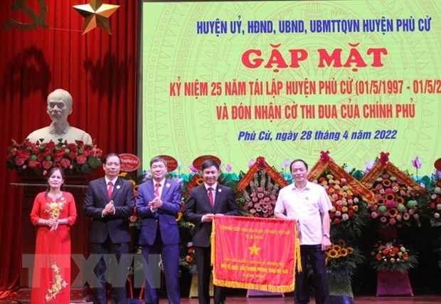 | Chủ tịch UBND tỉnh Hưng Yên Trần Quốc Văn trao cờ thi đua của Chính phủ cho Đảng bộ, chính quyền và nhân dân huyện Phù Cừ |