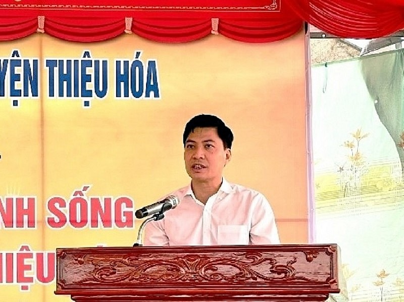 Ông Nguyễn Văn Biện - Bí thư huyện ủy, Chủ tịch HĐND huyện Thiệu Hóa phát biểu tại lễ khởi công
