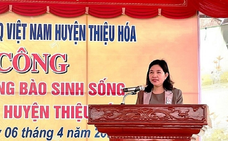 Bà Phạm Thị Thanh Thủy - Trưởng Ban dân vận tỉnh ủy, Chủ tịch Ủy ban Mặt trận tổ quốc tỉnh Thanh Hóa phát biểu tại lễ khởi công