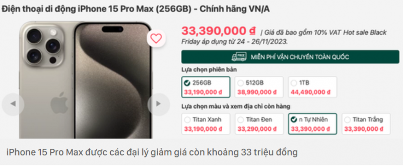 Tuy nhiên, sau thời gian khan hàng ban đầu, iPhone 15 Pro Max đã bắt đầu được giảm giá để kích cầu người tiêu dùng.