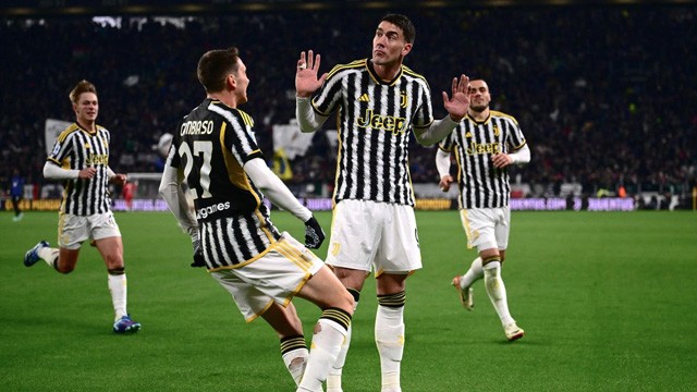 | Vlahovic mở tỷ số cho Juventus ở phút 27 |