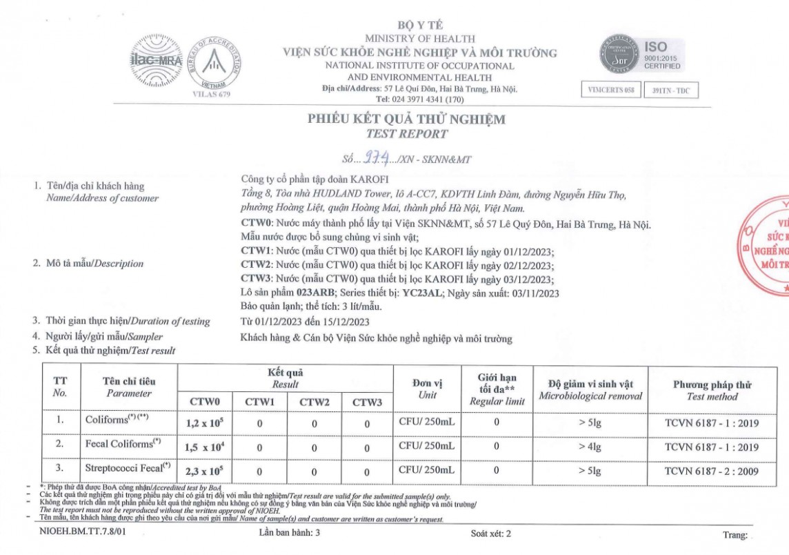 Thử nghiệm chất lượng nước đầu ra của máy lọc nước Karofi, Livotec theo quy chuẩn nào?Quảng cáo máy lọc nước đạt QCVN 6-1:2010/BYT, Karofi thử nghiệm ra sao?
