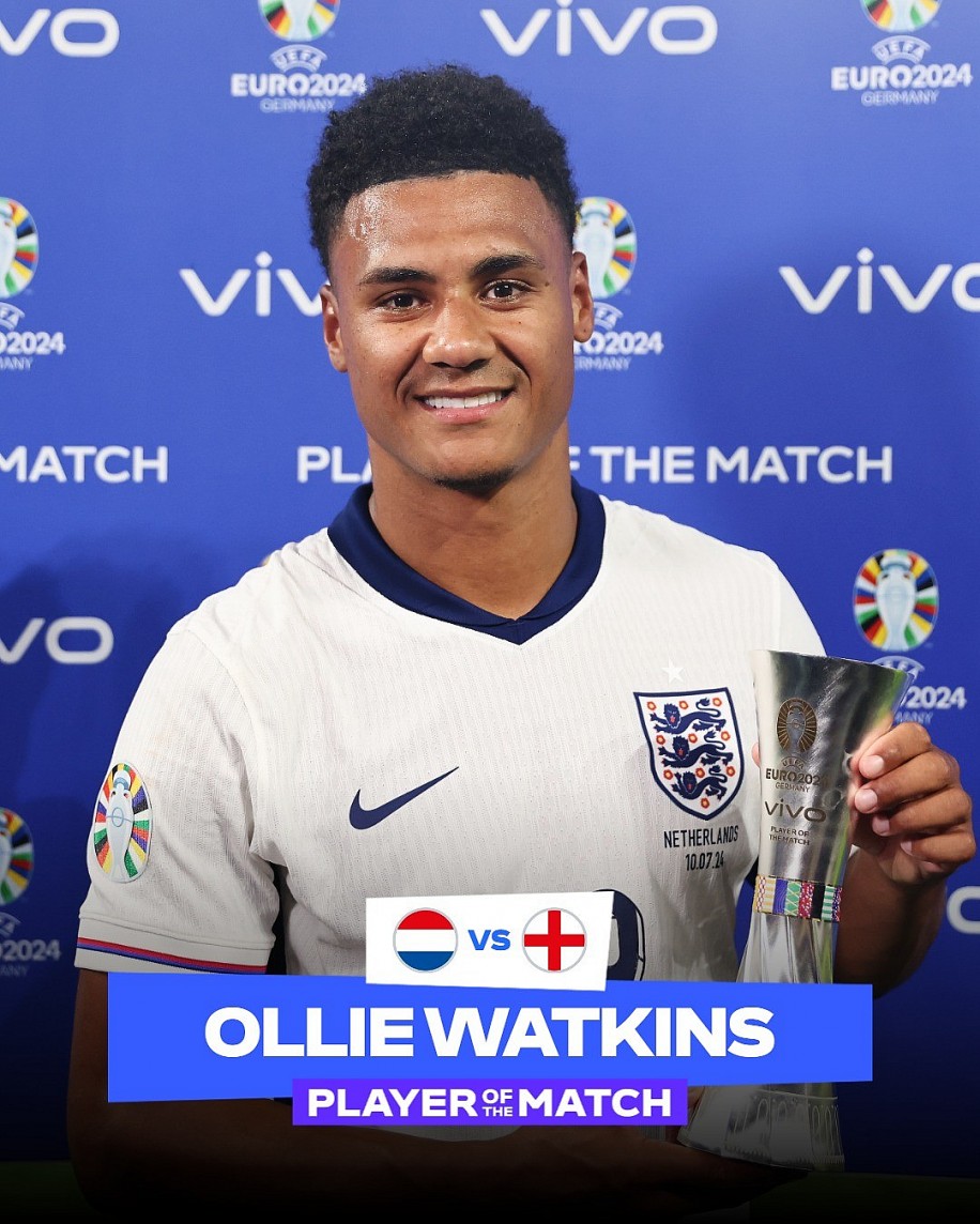 | Với bàn thắng "quý như vàng" của mình, Ollie Watkins cũng đã được trao tặng danh hiệu Cầu thủ xuất sắc nhất trận đấu (Ảnh:UEFA) |
