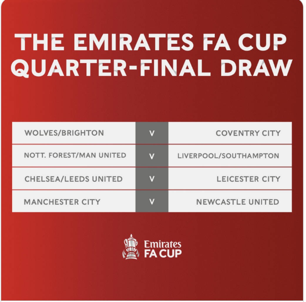 | 4 cặp đấu tứ kết FA Cup đã được xác định. Ảnh: Emirates FA CUP |