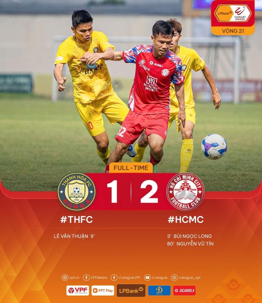 Kết quả trận Thanh Hoá và TP. Hồ Chí Minh: 1-2