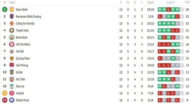 | Bảng xếp hạng sau Vòng 12 V-League 2023/2024 |