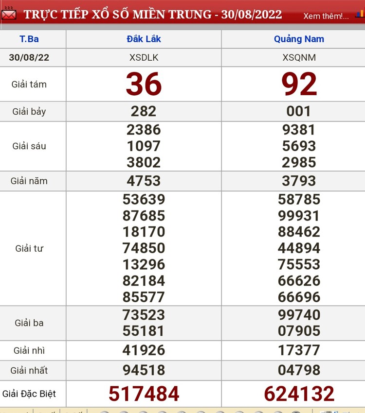 Trực tiếp, kết quả xổ số hôm nay 30/8