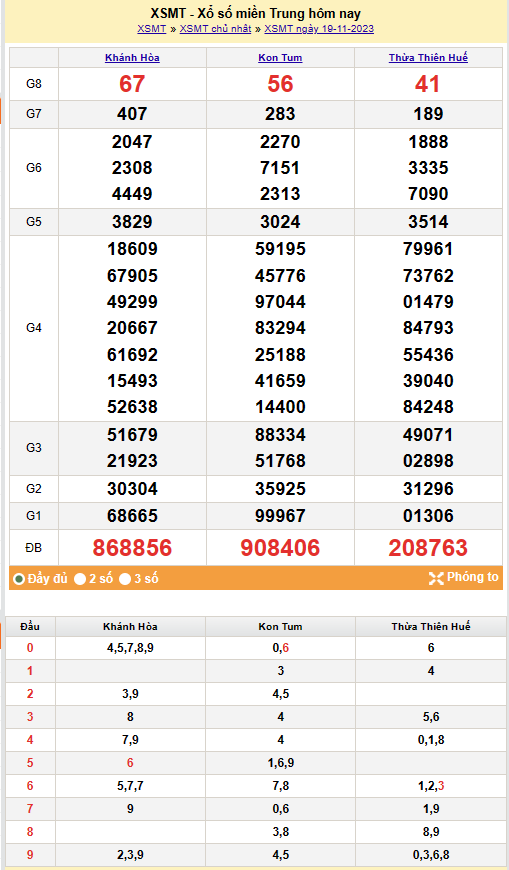 Kết quả xổ số miền Trung gồm các tỉnh thành: Xổ số Đà Nẵng, xổ số Quảng Ngãi, xổ số Đắk Nông, xổ số Bình Định, xổ số Đắk Lắk, xổ số Gia Lai, xổ số Khánh Hoà, xổ số Phú Yên, xổ số Bình Thuận, xổ số Thừa Thiên - Huế, xổ số Kon Tum, xổ số Quảng Trị, xổ số Ninh Thuận...