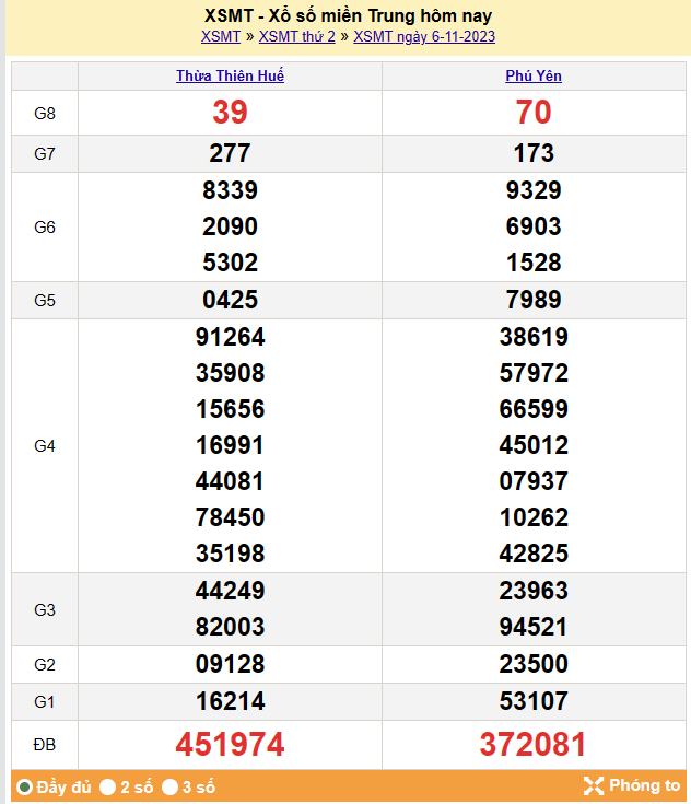 | XSMT, XSMT 6/11, Xổ số miền Trung ngày 6 tháng 11 |