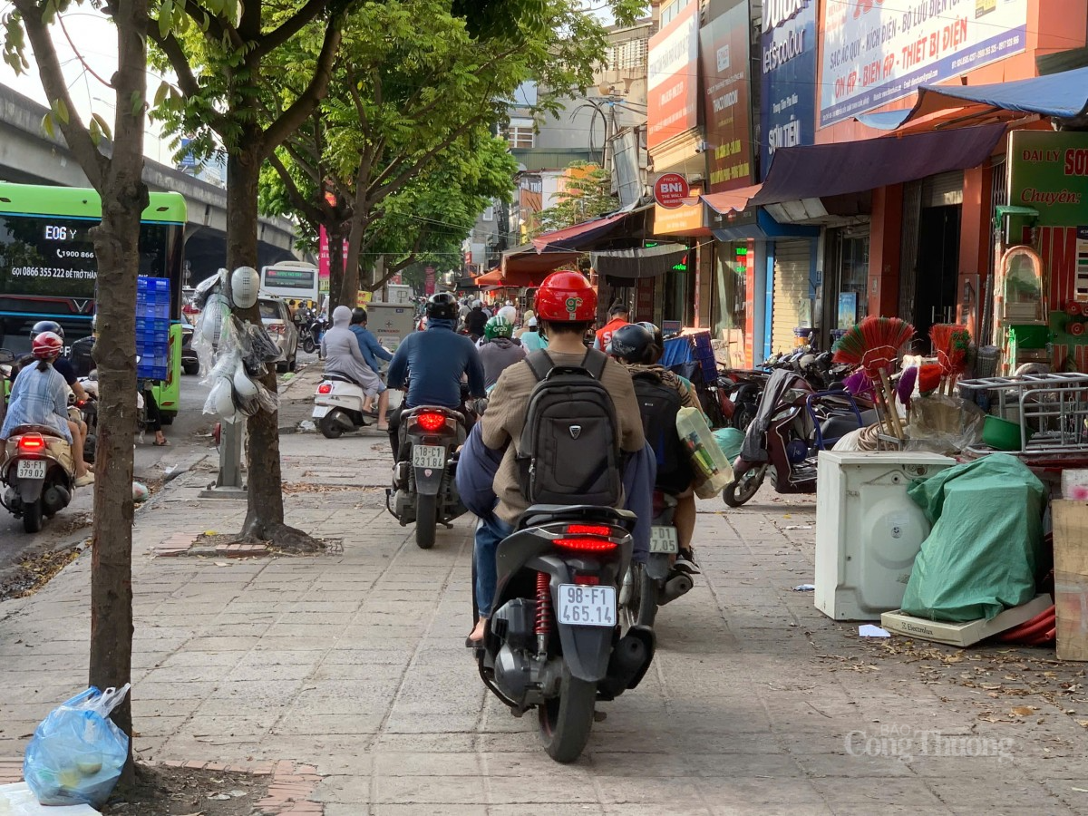 | Chính vì vậy, không ít người dân đã phóng xe máy lên vỉa hè để "tránh" tắc đường. Ảnh: Thanh Minh |