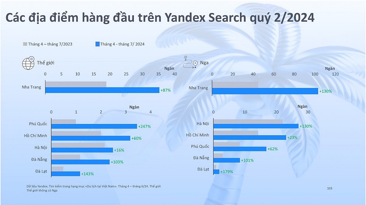 Đáng chú ý là sự quan tâm ngày càng tăng dành cho Việt Nam như một điểm đến du lịch hấp dẫn. Theo đại diện của Yandex Ads tại Việt Nam, tương lai của ngành du lịch Nga đang mở ra những cơ hội quan trọng cho sự phát triển của Việt Nam và doanh nghiệp có thể tận dụng các chiến dịch quảng cáo số để tiếp cận nhóm du khách tiềm năng này.
