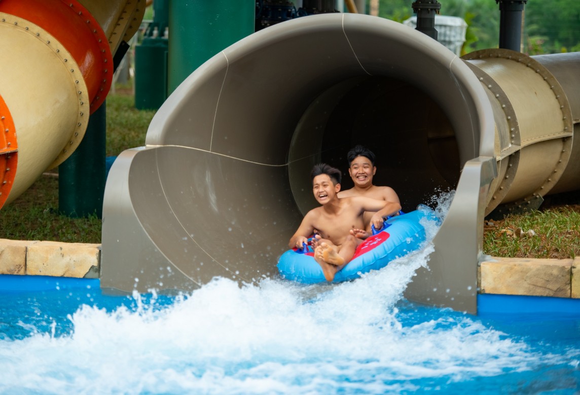 Được thiết kế trên cảm hứng từ những câu chuyện dân gian của các dân tộc Việt Nam, từng góc cảnh quan và tên gọi các trò chơi trong tổ hợp đều gợi nhắc cho du khách về những truyền thuyết và huyền thoại vốn đã rất quen thuộc như truyền thuyết Sơn Tinh – Thủy Tinh, sử thi “Đẻ đất, đẻ nước” của người Mường phía Tây Thanh Hóa... Chất liệu dân gian bản địa truyền thống được khai thác tối đa với tre, nứa, mái lợp… tạo cảm giác gần gũi, nhưng vẫn hài hòa với phong cách kiến trúc hiện đại của các tổ hợp trò chơi do ProSlide - đối tác hàng đầu thế giới trong lĩnh vực cung cấp thiết bị và các làn trượt công viên nước cung cấp.