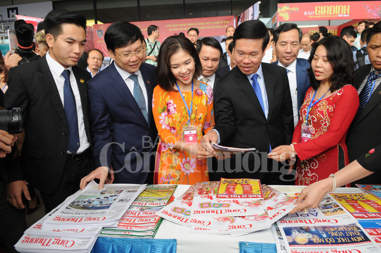 | Gian trưng bày của Báo Công Thương đón lãnh đạo Đảng và Nhà nước đến thăm quan |