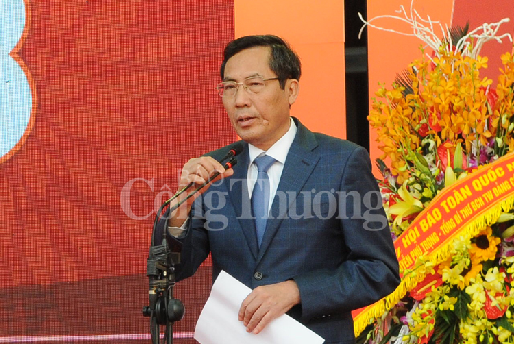 | Ủy viên Trung ương Đảng, Phó trưởng ban Tuyên giáo Trung ương, Chủ tịch Hội Nhà báo Việt Nam, Tổng biên tập báo Nhân dân Thuận Hữu phát biểu khai mạc hội báo |