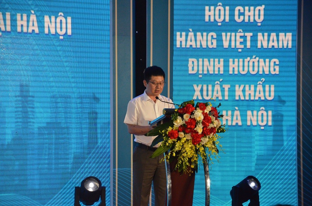 | Ông Bùi Duy Quang, Phó Giám đốc Trung tâm Xúc tiến Đầu tư, Thương mại, Du lịch Hà Nội phát biểu khai mạc Hội chợ hàng Việt Nam định hướng xuất khẩu. |