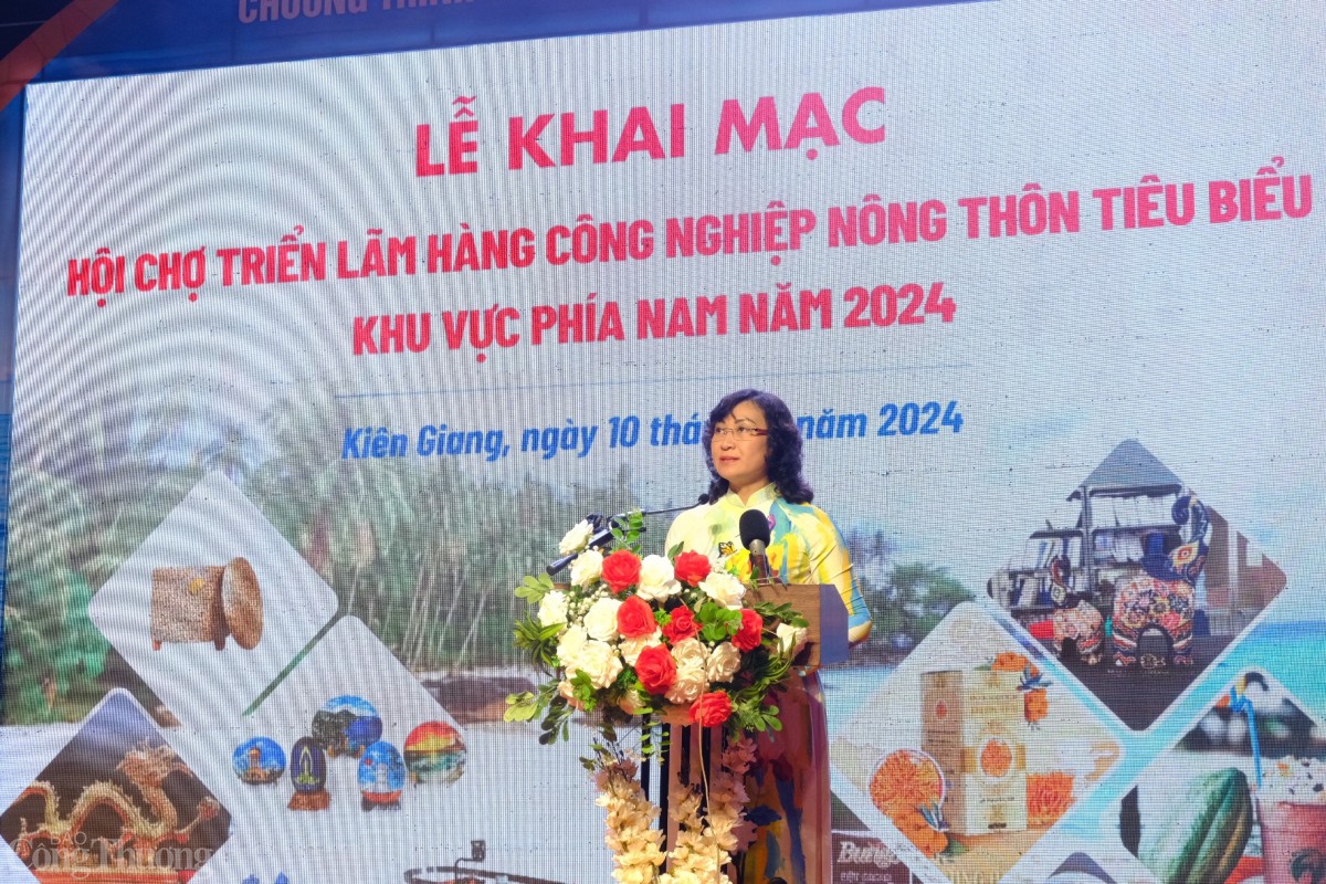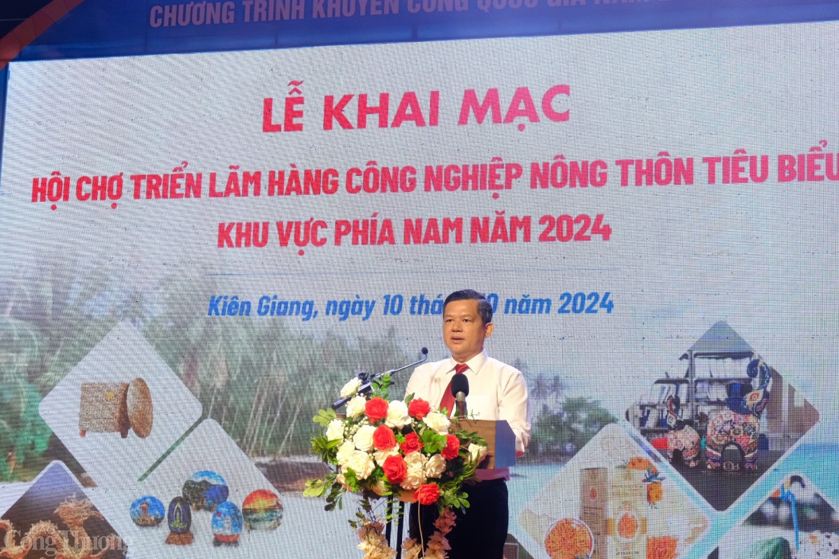 “Hội chợ triển lãm hàng công nghiệp nông thôn tiêu biểu khu vực phía Nam là sự kiện quan trọng của Chương trình khuyến công quốc gia năm 2024 trong chuỗi hoạt động nêu trên, nhằm giới thiệu thành tựu phát triển công nghiệp - tiểu thủ công nghiệp của các địa phương trong và ngoài khu vực. Bộ Công Thương tin tưởng rằng, Hội chợ triển lãm sẽ là cơ hội để các địa phương tăng cường liên kết tỉnh, liên kết vùng; góp phần thúc đẩy phát triển công nghiệp, thương mại và du lịch của tỉnh Kiên Giang cũng như khu vực phía Nam trong thời gian tới”, Thứ trưởng một lần nữa nhấn mạnh.