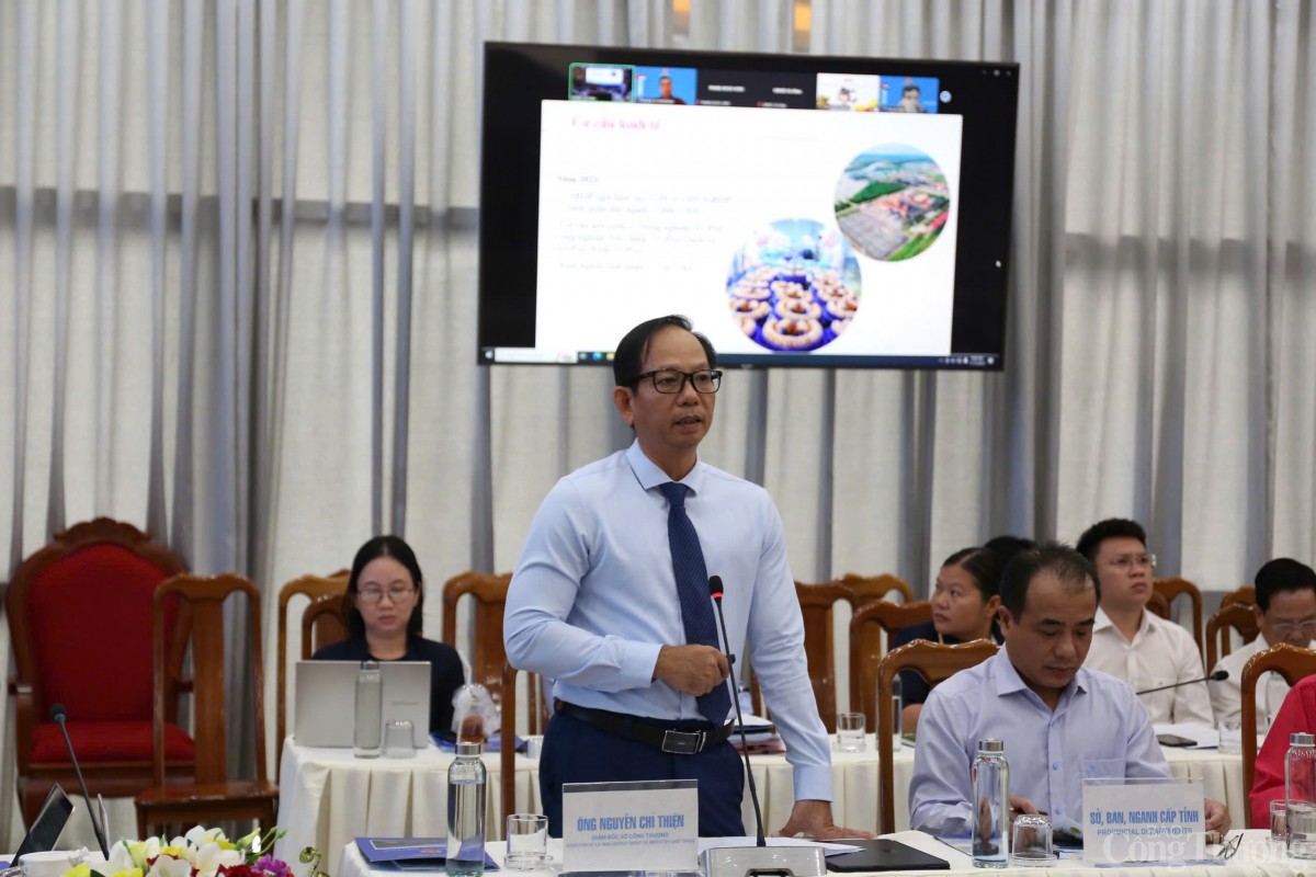 | Giám đốc Sở Công Thương tỉnh Cà Mau Nguyễn Chí Thiện giới thiệu về tiềm năng hợp tác kinh tế của tỉnh tại Hội nghị. Ảnh: Tiểu Kết |