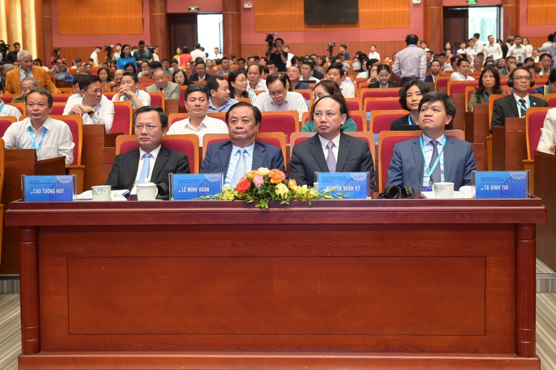 | Bộ trưởng Bộ Nông nghiệp và Phát triển nông thôn Lê Minh Hoan cùng lãnh đạo tỉnh Quảng Ninh và đại diện các bộ, ngành Trung ương tại hội nghị. Ảnh: NNVN |