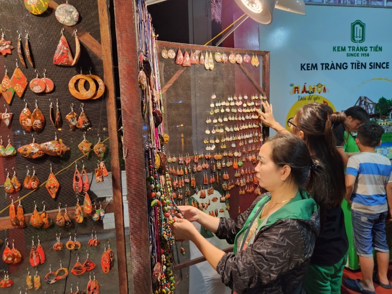 | Nhiều sản phẩm làng nghề đặc trưng của Hà Nội đã được trưng bày, giới thiệu tại lễ hội (Ảnh: Thu Hường) |