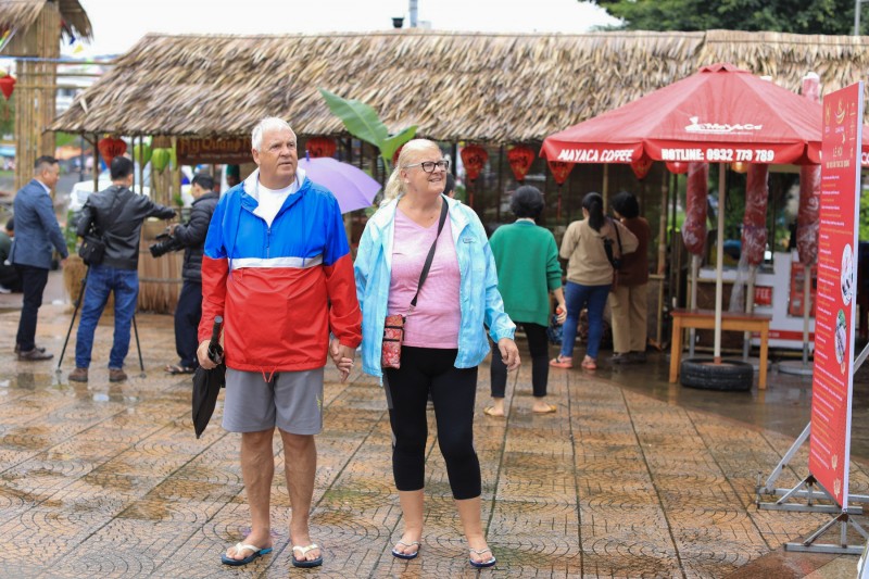 | Du khách nước ngoài tham quan lễ hội |