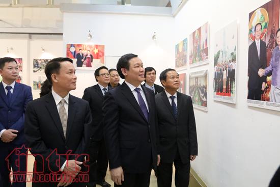 | Đồng chí Vương Đình Huệ, Ủy viên Bộ Chính trị, Phó Thủ tướng Chính phủ cùng các đại biểu tham quan triển lãm |