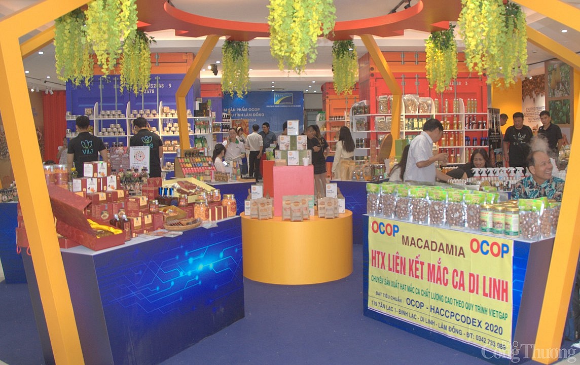 Điểm nhấn tại Tuần lễ lần này của Lâm Đồng chính là không gian trưng bày, giới thiệu khoảng 230 sản phẩm nông sản đặc trưng như cà phê, trà, mứt, hạt macca, nấm hương, các loại rau củ quả… của hơn gần 30 doanh nghiệp, hợp tác xã là các sản phẩm đạt chứng nhận sản phẩm công nghiệp nông thôn tiêu biểu, sản phẩm OCOP và đặc trưng có tiềm năng cung ứng cho các kênh phân phối hiện đại trong nước và xuất khẩu.