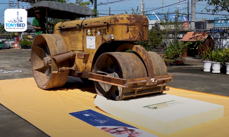 Ngoài ra, Tonybed đã áp dụng nhiều phương pháp kiểm tra độ bền và chịu lực của sản phẩm. Một trong số đó là việc sử dụng phương tiện vận chuyển có tải trọng lên đến 10 tấn. Cụ thể, nệm được đặt trên bề mặt cứng và cho phương tiện vận chuyển chạy qua, tạo ra áp lực lớn và liên tục để kiểm tra khả năng chịu lực và đàn hồi của nệm.