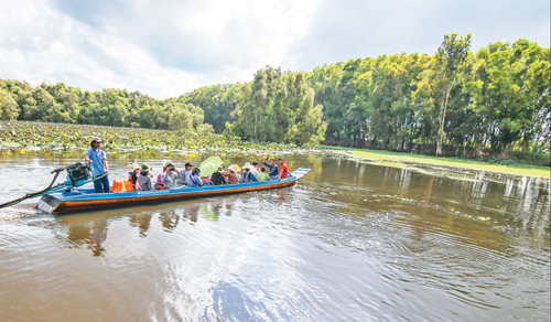Du khách tham quan rừng tràm Trà Sư, xã Văn Giáo, huyện Tịnh Biên, tỉnh An Giang. |