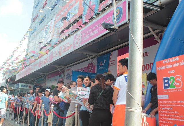 | Khách hàng chờ mua trong ngày đầu khai trương |