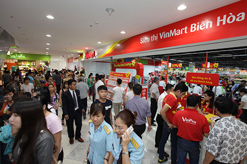 | Khách hàng mua sắm tại siêu thị Vinmart ngay sau khi TTTM Vincom Biên Hòa đi vào hoạt động |