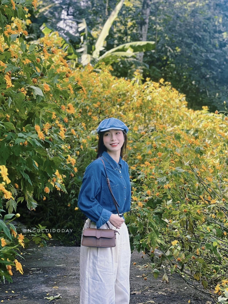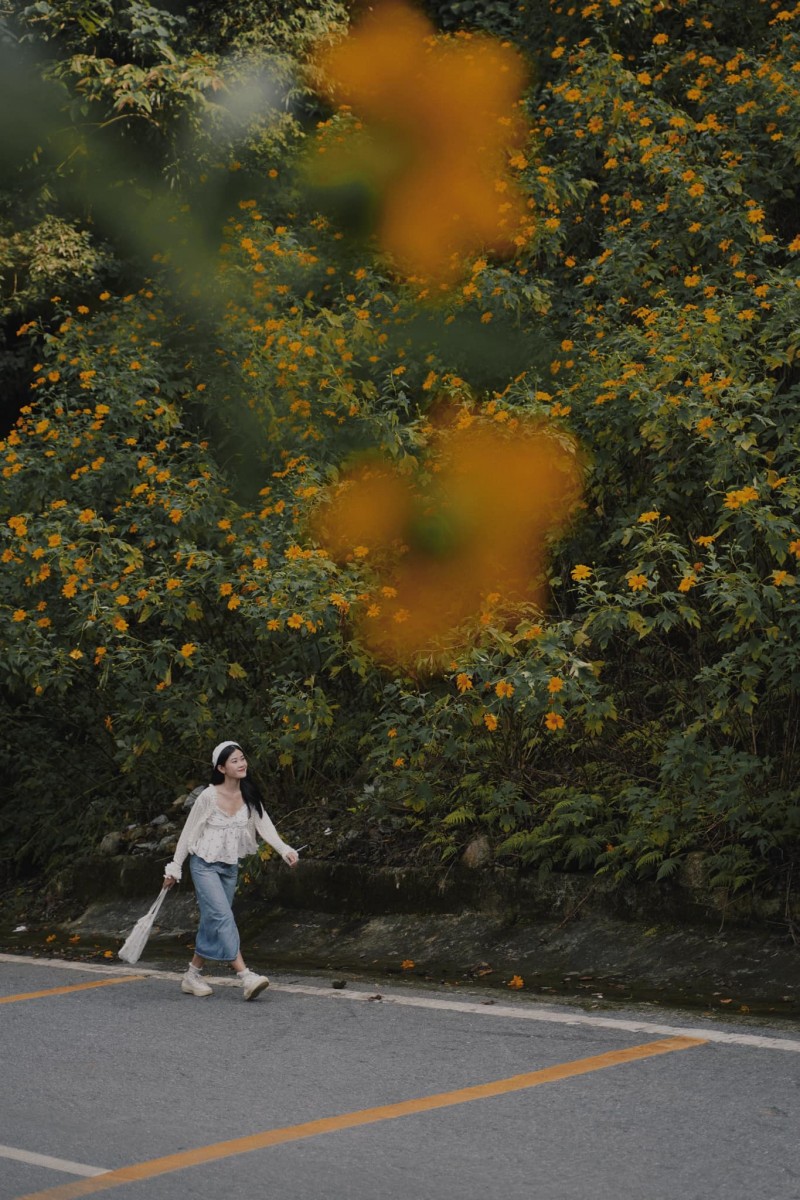 Nếu muốn chụp theo phong cách ngầu và "ma mị" hơn, bạn có thể đến vào chiều tối. Hoa dã quỳ là bối cảnh khá dễ tạo dáng và phù hợp với nhiều phong cách khác nhau nên bạn có thể thoải mái lựa chọn trang phục”.