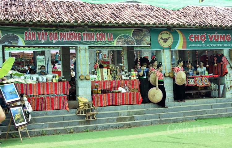 Trong đó, 10 gian hàng của tỉnh Sơn La gồm: Rau củ quả, thịt trâu treo gác bếp..., không gian giới thiệu ẩm thực thắng cố, mèn mén, rượu ngô Mộc Châu, xôi màu... ; 20 gian hàng giới thiệu các sản vật địa phương của các tỉnh Điện Biên, Hà Giang, Hòa Bình, Thái Nguyên, Ba Vì (Hà Nội) với các sản vật đặc trưng địa phương như thổ cẩm, đồ mỹ nghệ, rượu, hương liệu dân tộc, thuốc nam, măng khô, miến dong, mật ong…